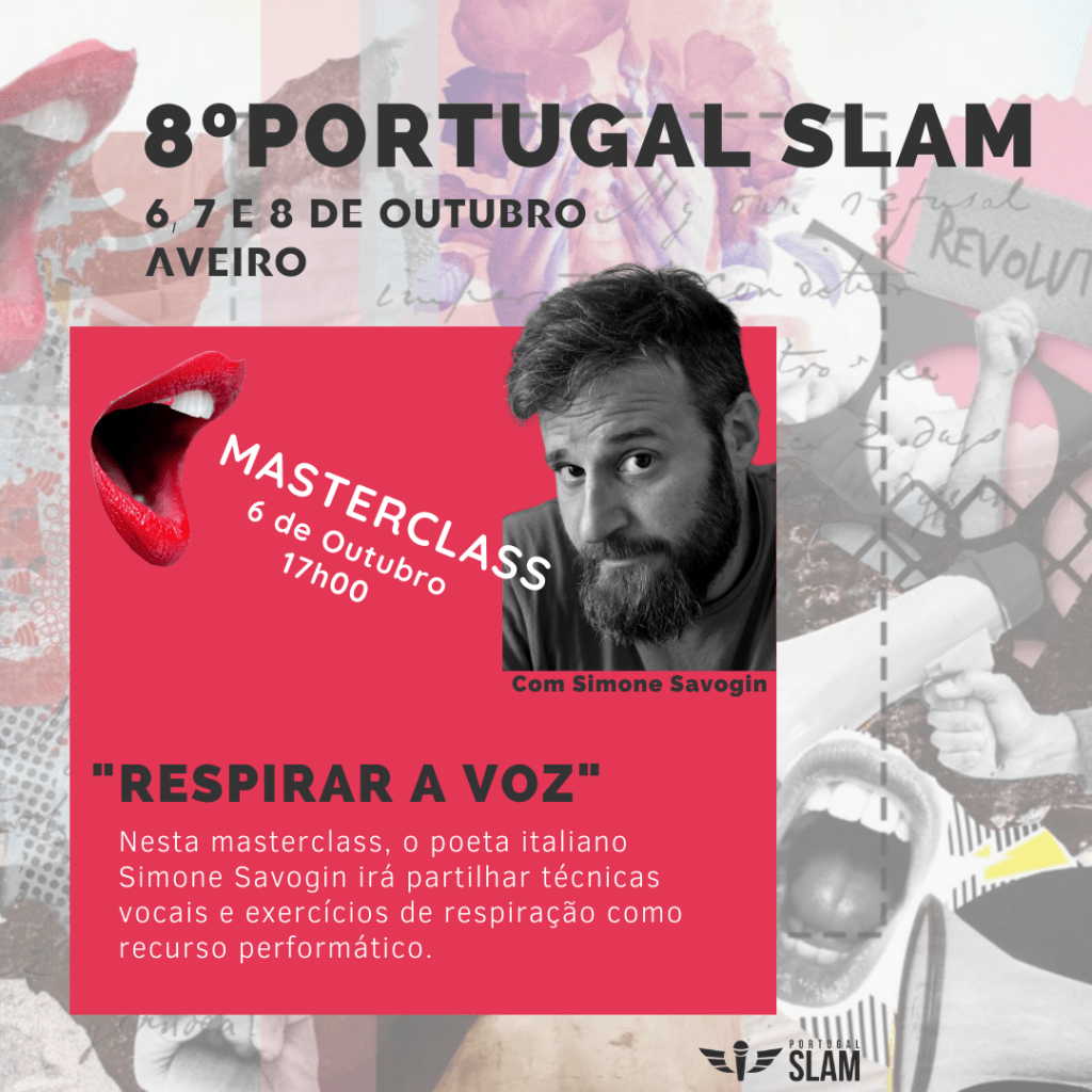Nesta 8ª edição teremos a presença especial da Roberta Estrela d’Alva (BR) e do Simone Savogin (IT); poetas, artistas de excelência dentro do movimento Poetry Slam e Spoken Word, mas não só!
