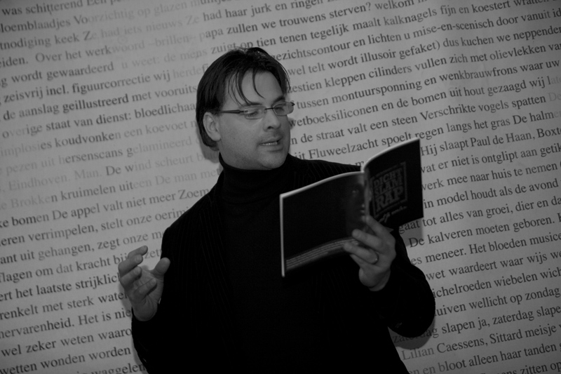 Poeta-performer e investigador académico. Escreve em NL, PT, FR, DE, ES e formulários multilíngues. Ativo no teatro, a poesia e as artes desde 1984. Cria improvisação, sons, instalações e performances poéticas, utilizando assuntos atuais, questões sócio-políticas e ambientais. Co-fundador da DAstrugistenDA, artiestencollectief JA!, BruSlam & TnXR-productions. Foi laureado com o prémio D. Buliuk nas áreas da arte e pesquisa de vanguarda, Internacional Zaum Akademia, Rússia. Professor de poesia e performance, consultor de slam experimental e programação poética. Pesquisa academica sobre os temas da poesia visual, a definição e interpretação de poesia visual, o avant garde e sua abordagem interdisciplinar e a tendência para integrar novas técnicas e tecnologias. Membro de “O Grupo de Pesquisa Wintergarten” da Universidade Livre de Bruxelas. Foto: Bart Coolen, DichtSlamRap 2011