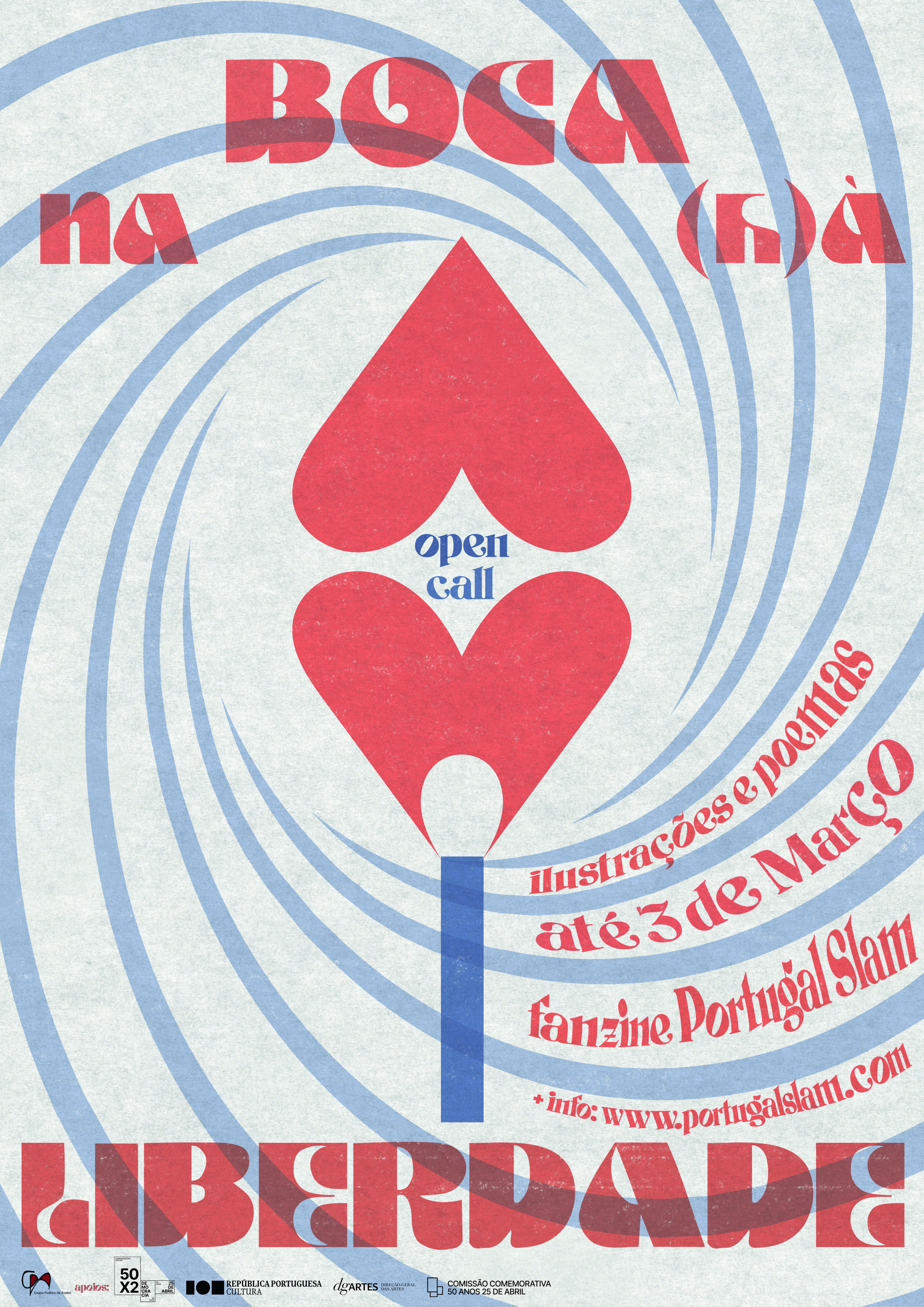 Este é um projeto desenvolvido pelo Grupo Poético de Aveiro e a plataforma Portugal Slam no âmbito dos 50 anos do 25 de Abril, com o apoio da República Portuguesa – Cultura / Direção-Geral das Artes e Comissão Comemorativa 50 anos do 25 de Abril, onde o principal mote é comemorar este marco especial tendo como eixo temático a liberdade e a democracia.